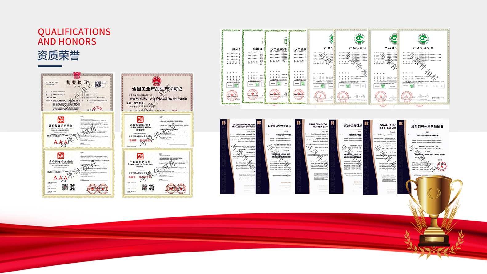 河北力揚水利機械有限公司,成立于2016年,地址河北省邢臺市新河縣富強街與九龍北路交匯處西南角具備生產及供應、安裝能力。我們公司位于董振堂將軍故里,河北省邢臺市新河縣九龍工業區,是一家集設計、生產、銷售、安裝、售后一體的綜合性水利機械廠家,現有人員共40余名,獲有國家頒發的全國工業產品生產許可證、ISO質量管理體系認證、環境體系認證、職業健康體系認證并且我公司通過水利相關部門水工金屬結構質量檢驗中心的考核和監督下獲得了:認證頒發的四項產品認證證書(平面閘門、弧形閘門、回轉式清污機、耙斗式清污